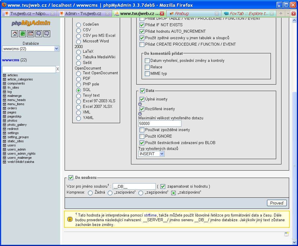 Zazálohujte svoje databáze. Ve většině případů se jedná o mySQL databázi a export databáze probíha přes phpMyAdmin.